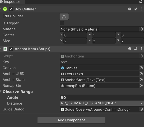 3. Set the properties of `AnchorItem` in the Unity Inspector.