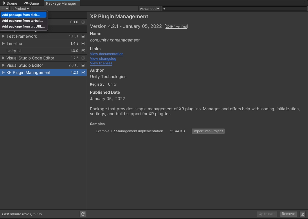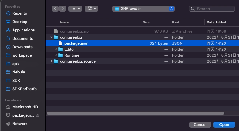 com.xreal.xr.zipfile to a local directory;In the editor, go to the "Windows -> Package Manager" menu bar, click "+", select "