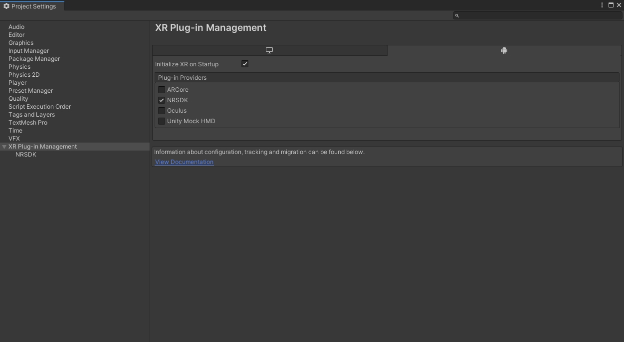Go to "Edit -> Project Settings -> XR Plug-in Management" and check the "NRSDK" option;