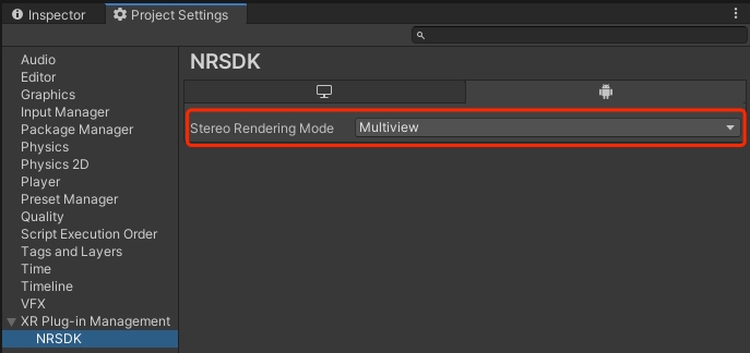 Go to "Edit -> Project Settings -> XR Plug-in Management -> NRSDK", switch the StereoRenderingMode to