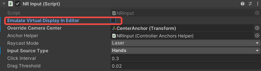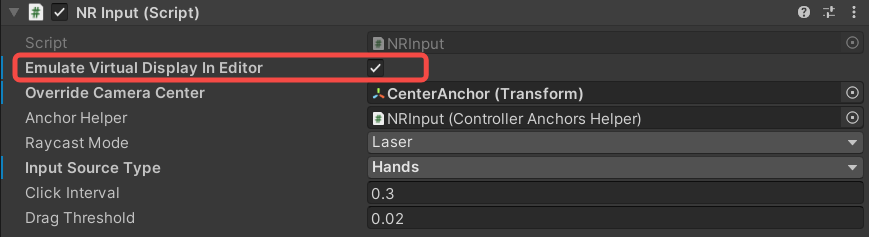 NREmulatorHeadPose.prefabwill be automatically loaded byNRCameraRig.prefabinto the scene for simulating the head pose data.When Unity Editor under runtime, the