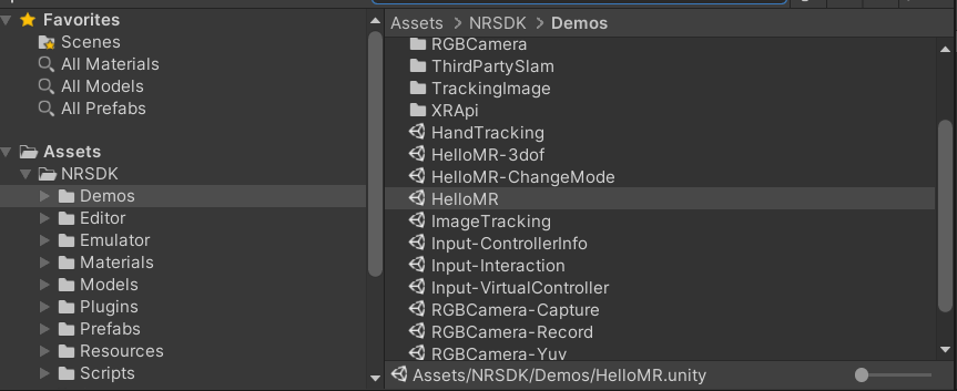 Assets > NRSDK > Demos > HelloMR.Double click