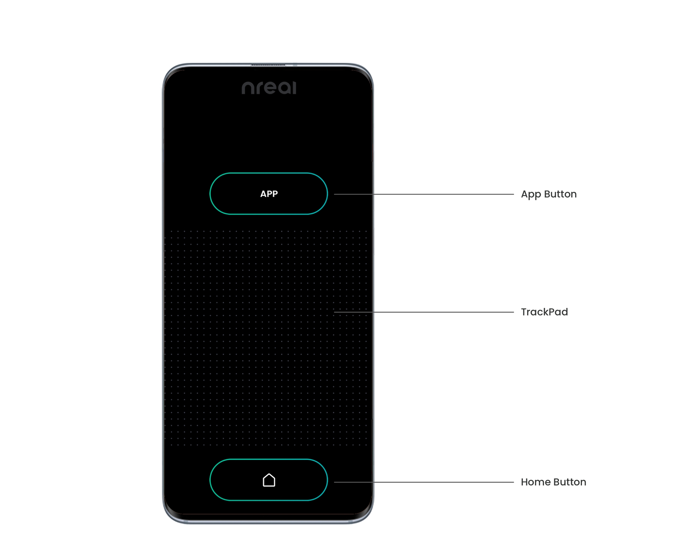 Press and hold to recenter your controller. Press can be customized for your app, e.g. opening an in-app menu or performing a special action. ( Pay attention: For XREAL Light Controller, pressing the App Button equals to pressing the Touchpad Button)